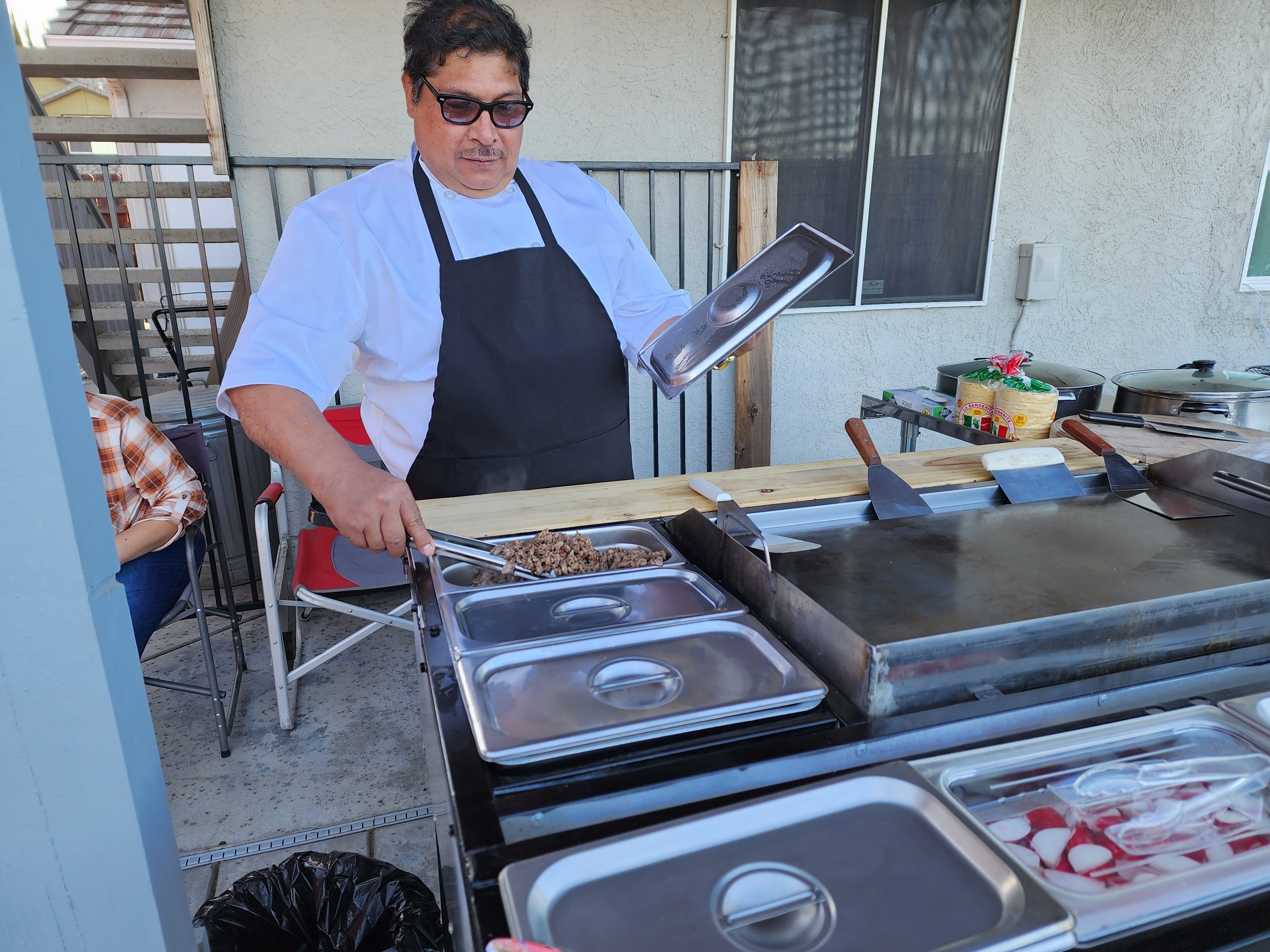 estamos a sus ordenes asemos taquisas a domicilio y tambie contamos con banquetes como birria y barbacoa se sirben con aros y frijoles fritos o de la olla es al gusto llama al 209 298 6101 ablamos español